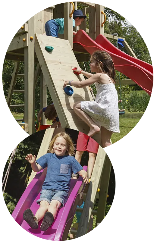 Kompletan paket uključuje razne kule za igru, ljuljačke i dodatne module. Svaki od njih je sa originalnim i prepoznatljivim dizajnom, ali prilagodljivim za svaki budžet i raspoloživi dvorišni prostor.