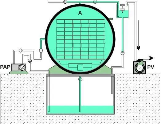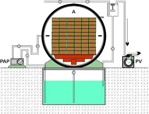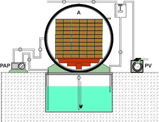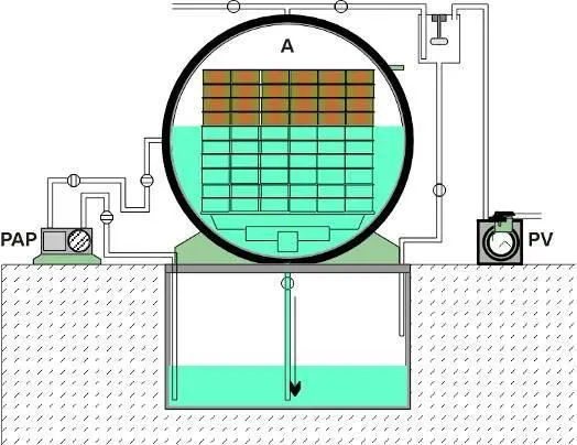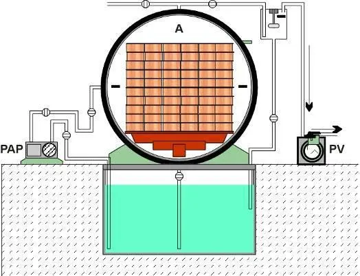 Po završetku faza tretmana drveta, otopina koja nije apsorbirana vraća se u svoj spremnik pomoću ispusnog ventila na autoklavu.